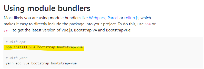 노란색 코드를 이용해서 vue에서 부트스트랩 사용할 것임.
