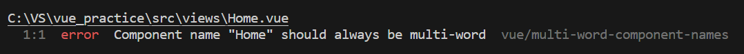Vue router, should always be multi-word-component 에러 (ESLint 설정)