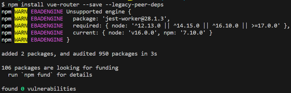 npm install vue-router --save --legacy-peer-deps