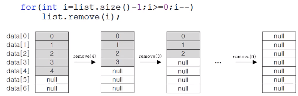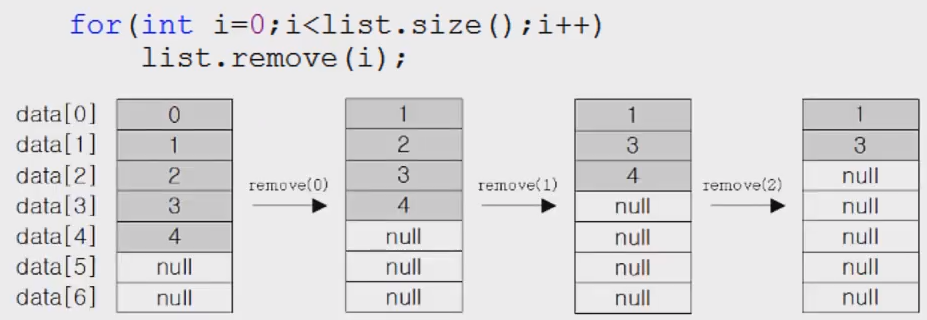 - ArrayList에 저장된 세 번째 데이터(data[2])를 삭제하는 과정. `list.remove(2);`를 호출