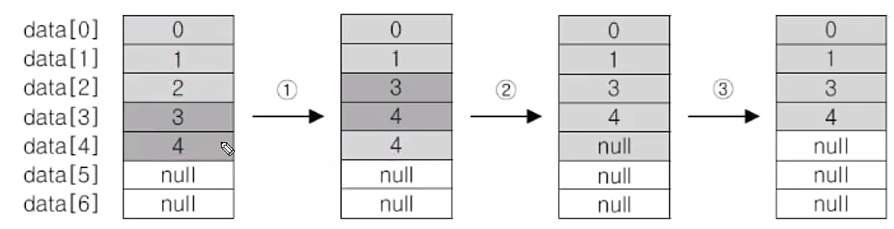 ② 데이터가 모두 한 칸씩 이동했으므로 마지막 데이터는 null로 변경한다.