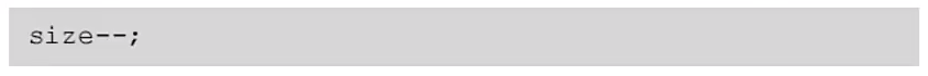 ③ 데이터가 삭제되어 데이터의 개수가 줄었으므로 size의 값을 감소시킨다.