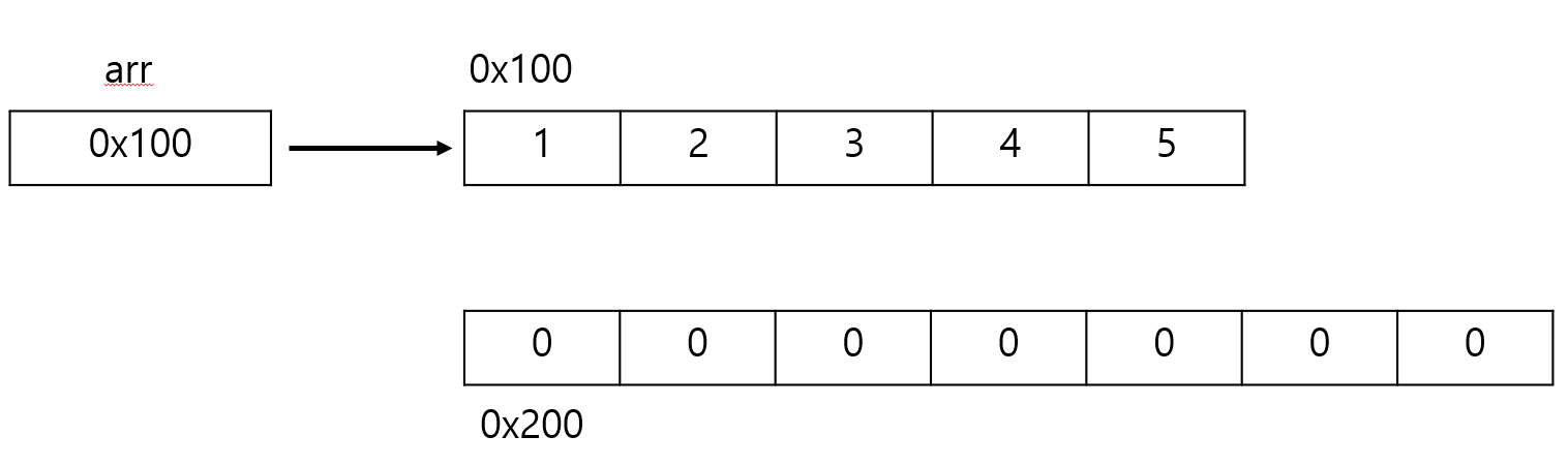- 크기를 변경해야 하는 경우 새로운 배열을 생성 후 데이터를 복사해야함. (코드로 작성은 못 해도 설명은 해야함. )