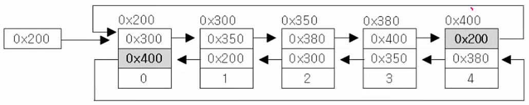 ● 더블리 써큘러 링크드 리스트(doubly circular linked list) - 이중 원형 연결리스트