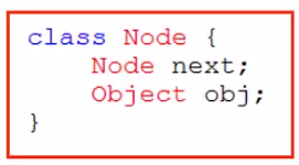 - 요소 하나를 `Node`라고 한다. Node 클래스를 보면 Node는 다음 노드이고, Object는 데이터이다.