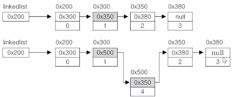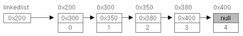 - 다음 요소(노드)의 주소인 0x300을 저장한다.