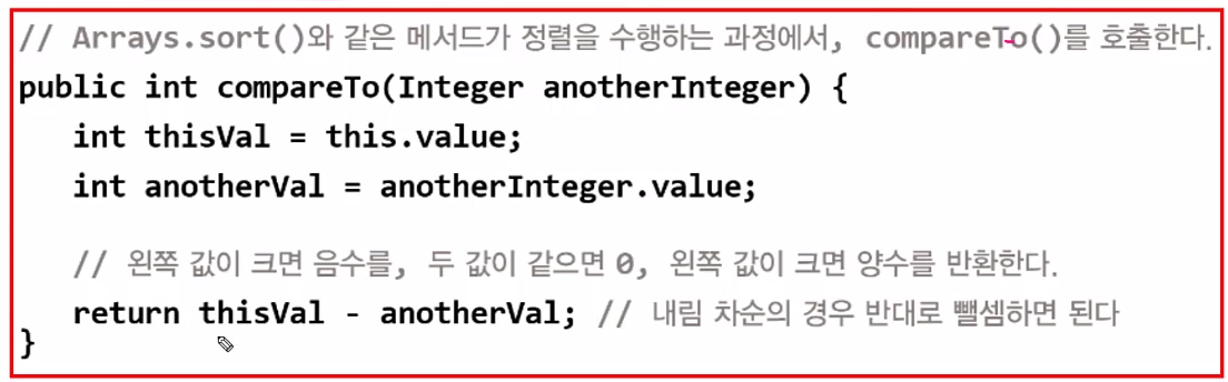 - compare()와 compareTo()는 두 객체의 비교결과를 반환하도록 작성