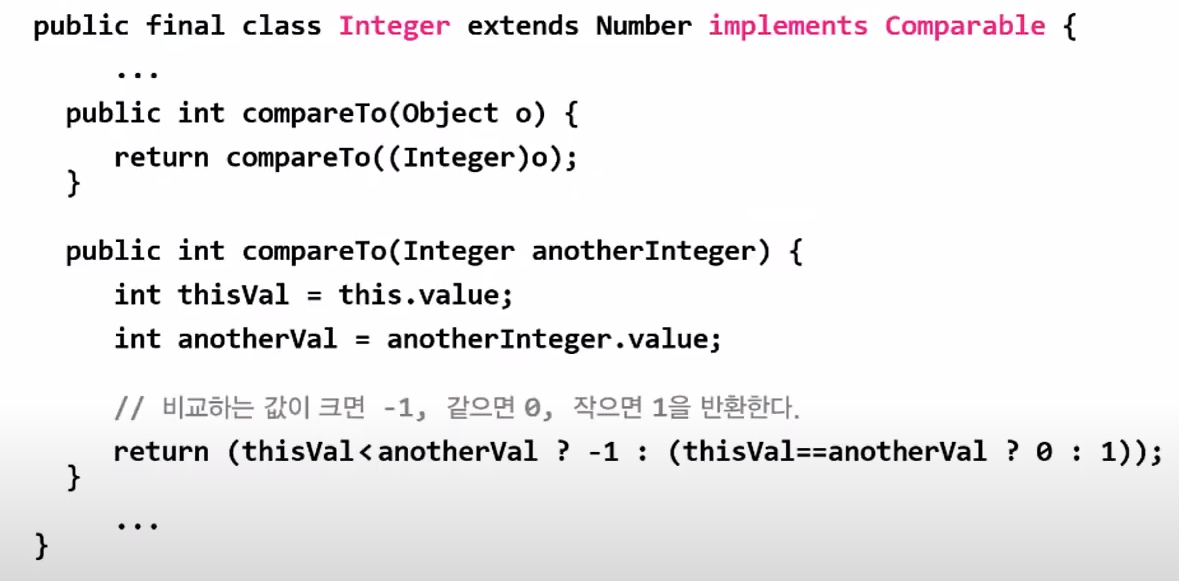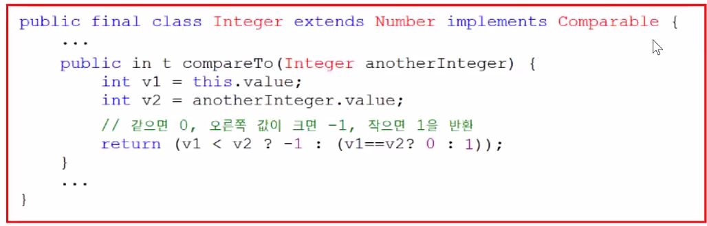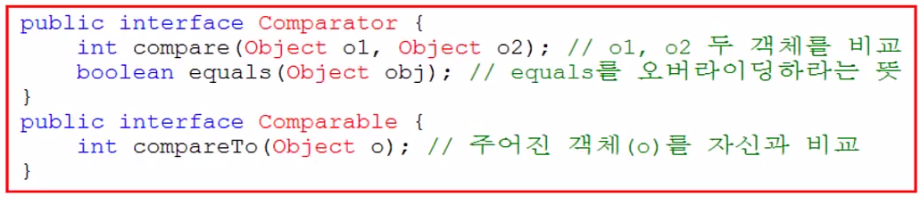 - 객체 정렬에 필요한 메서드(정렬기준 제공)를 정의한 인터페이스