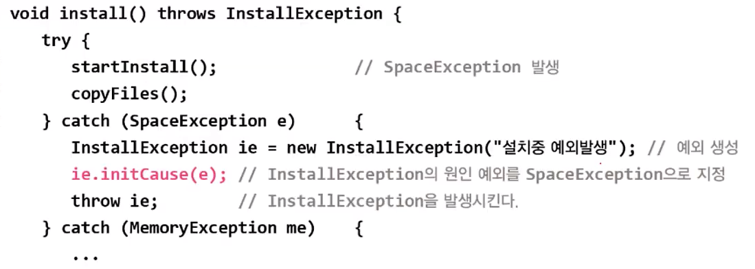 - 한 예외가 다른 예외를 발생시킬 수 있다.