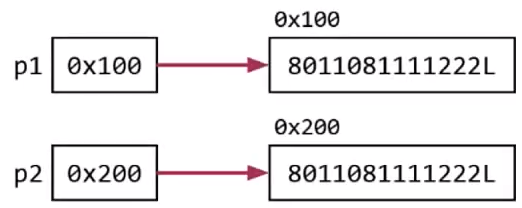 1. System.out.println(p1==p2); p1 == p2는 주소를 비교한다. 따라서 0x100 == 0x200이 되고, false라는 결과를 반환한다.