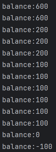 - 만약에 synchronized라는 키워드가 없다면 balance가 음수가 나온다. 그런데 항상 문제가 있는 것은 아니다. 문제가 있을 때도 있고 없을 때도 있다.