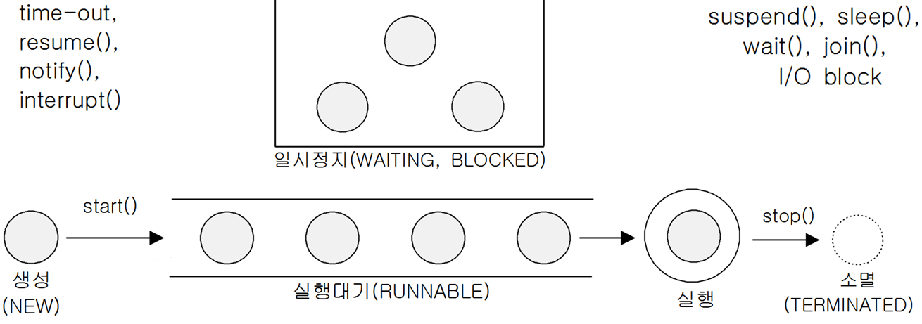 - suspend(), resume(), stop()은 교착상태에 빠지기 쉬워서 deprecated되었다. (사용권장X)