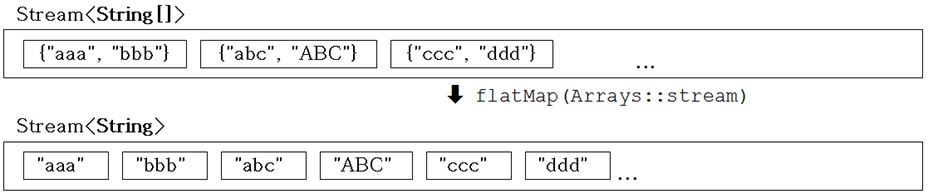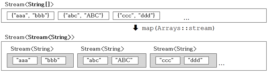 map(Function<T, R> mapper) mapToDouble(ToDoubleFunction<T> mapper) mapToInt(ToIntFunction<T> mapper) mapToLong(ToLongFunction<T> mapper) flatMap(Function<T, Stream<R>> mapper) flatMapToDouble(Function<T, DoubleStream> m) flatMapToInt(Function<T, IntStream> m) flatMapToLong(Function<T, LongStream> m) |