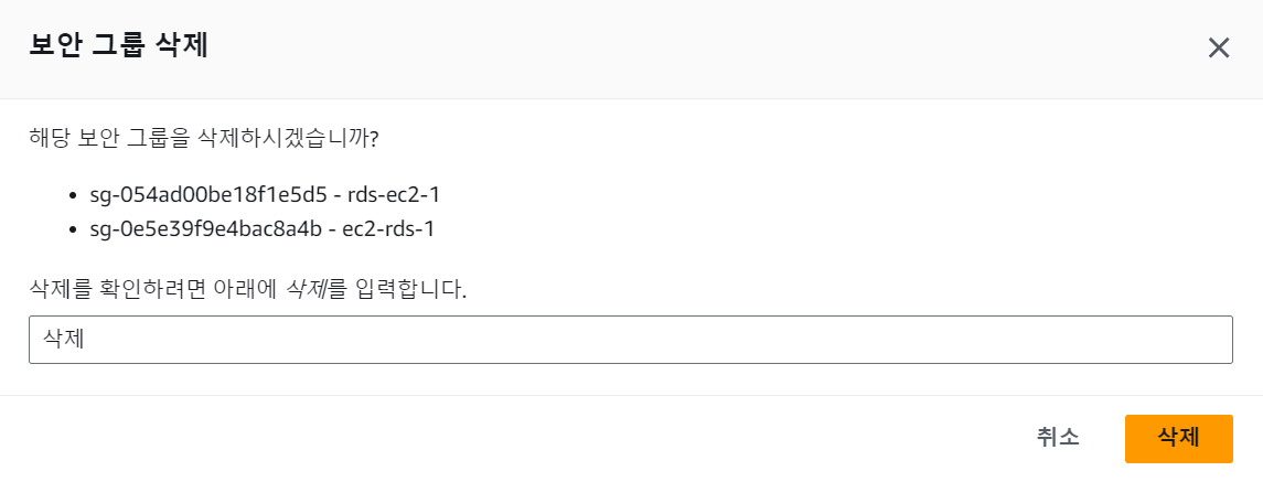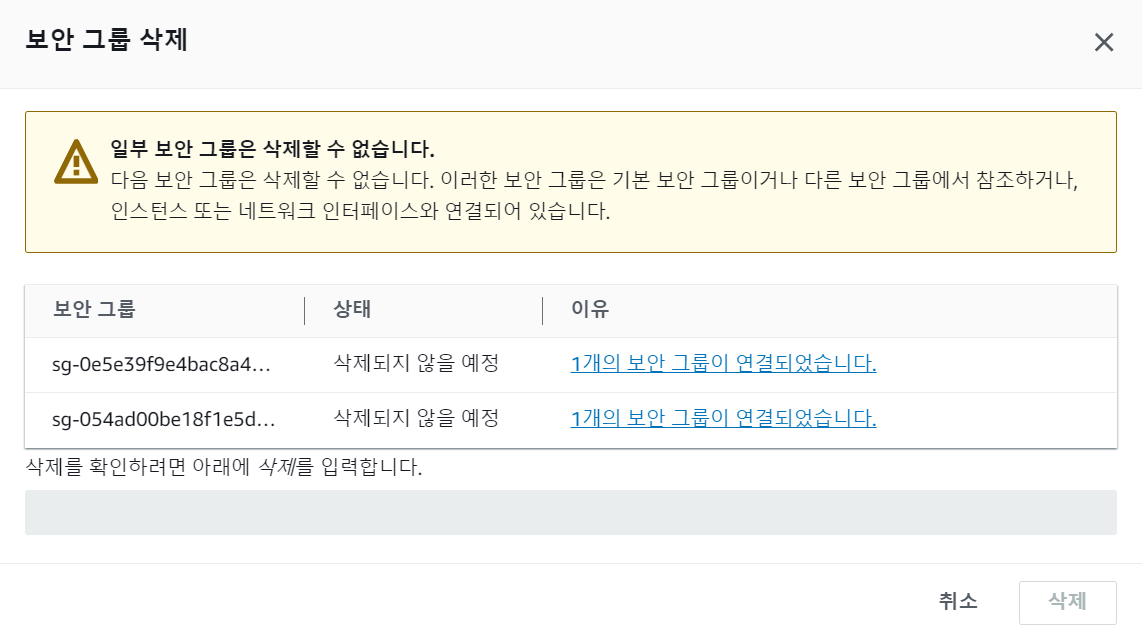 보안 그룹을 삭제하려고 하니까 안 됌?
