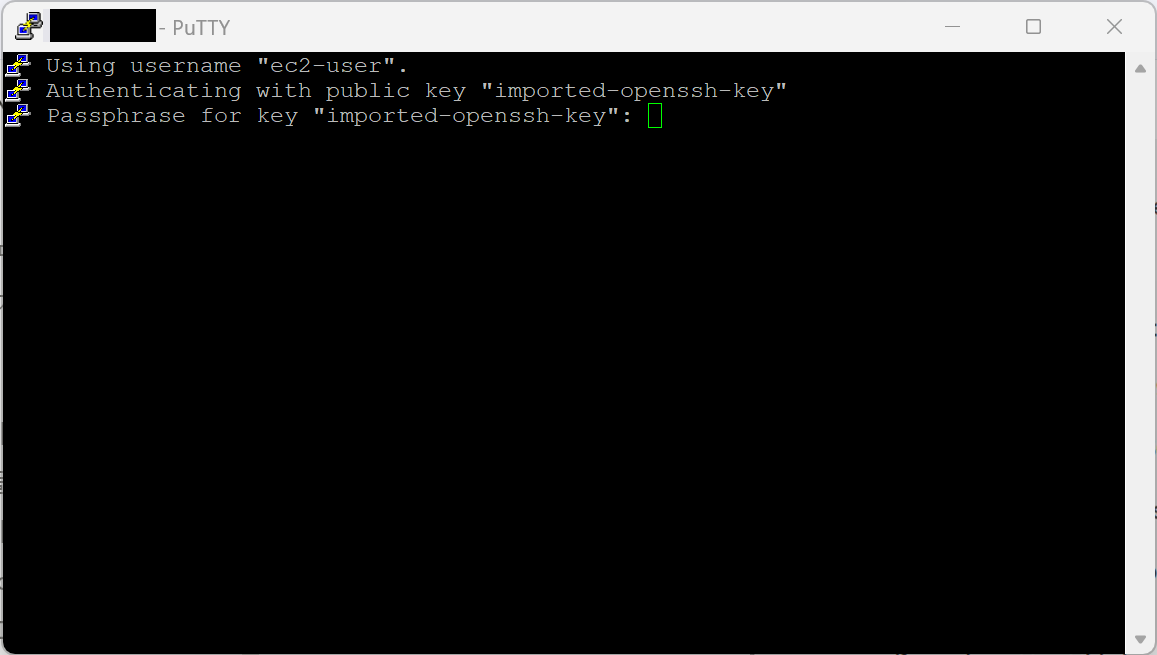 PuTTY에서 입력한 Key passphrase(비번) 입력치고 enter