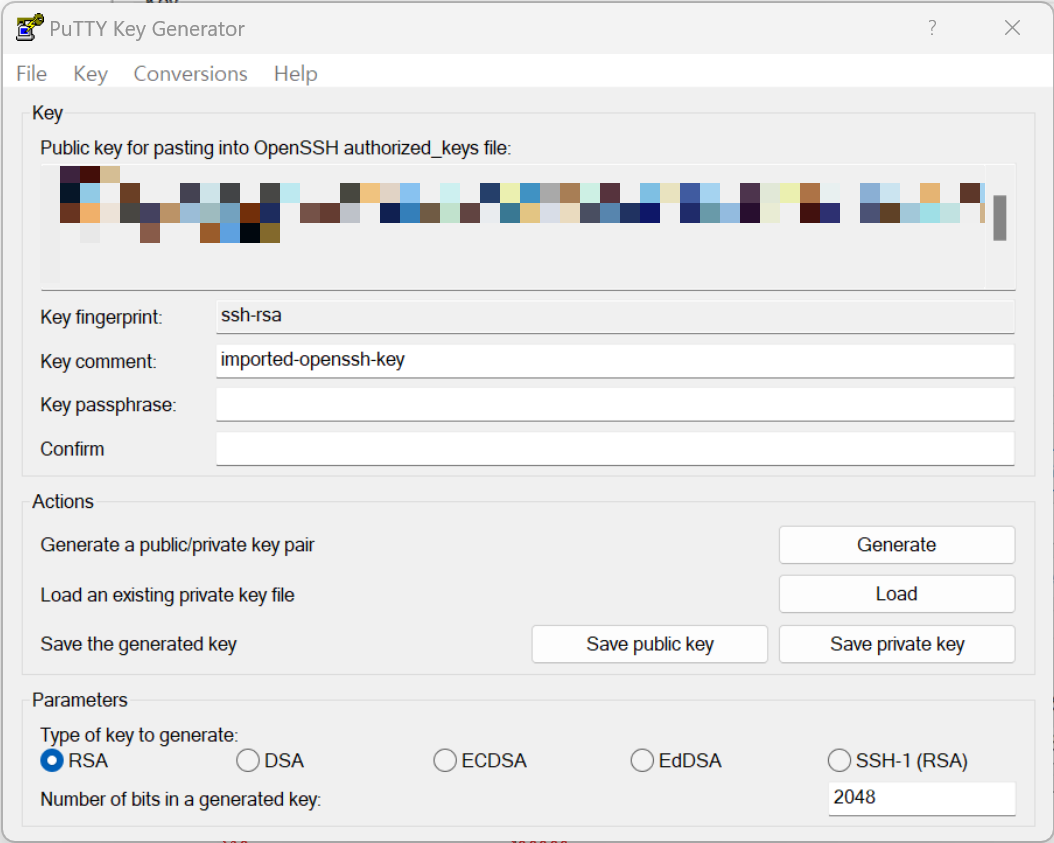 `Key passphrase`(비번) 입력하기 > `Confirm`에 한 번 더 입력 > `Save private key` 입력 > ppk로 바뀐 파일명 입력