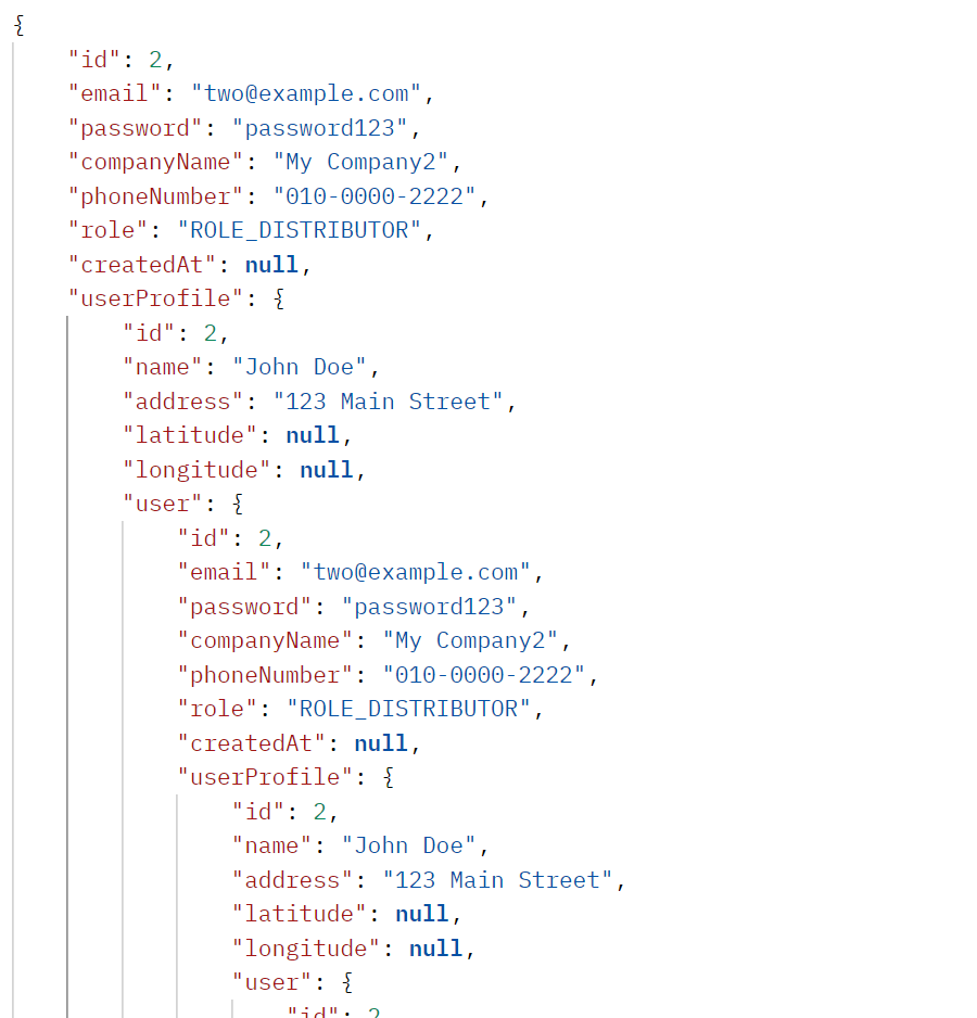 나의 경우 user, userinfo를 1:1 양방향으로 해놓았는데 여기서 문제 발생